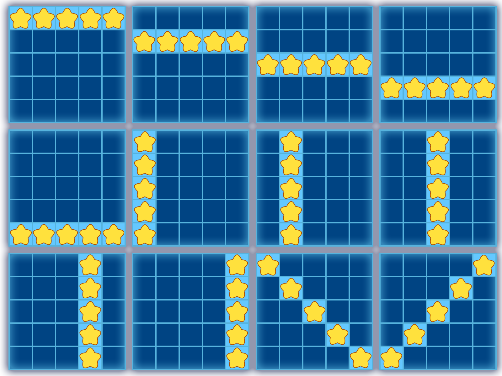 For example the central square would be given preference since it is included in a horizontal, vertical and two diagonal lines.